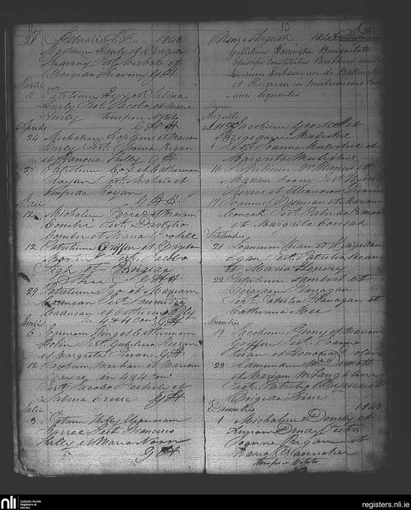 Ballintubber and Ballymoe; County of Roscommon; Diocese of Elphin. Marriages, Feb. 1843 to Dec. 1843