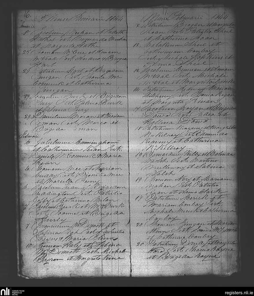 Ballintubber and Ballymoe; County of Roscommon; Diocese of Elphin. Marriages, Jan. 1844 to Feb. 1844