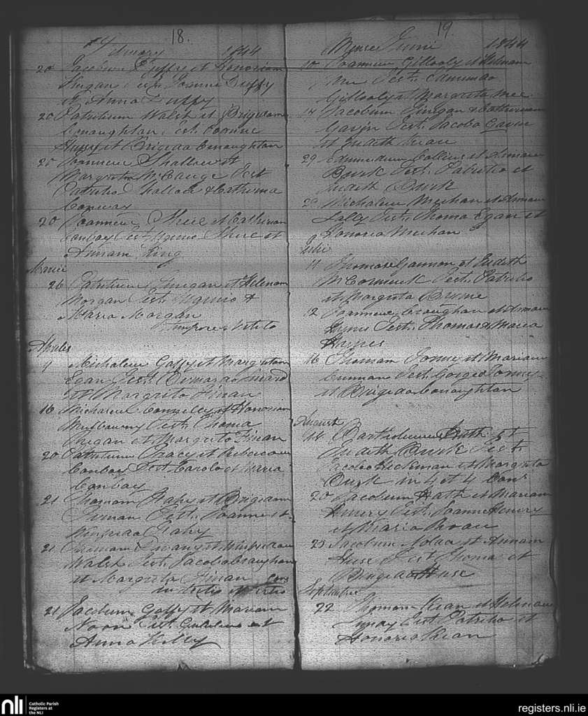 Ballintubber and Ballymoe; County of Roscommon; Diocese of Elphin. Marriages, Feb. 1844 to Sep. 1844