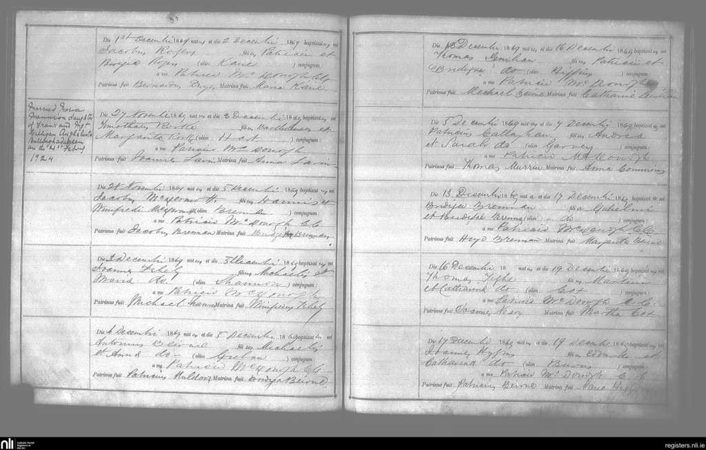 Ballinameen; County of Roscommon; Diocese of Elphin. Baptisms, Dec. 1869