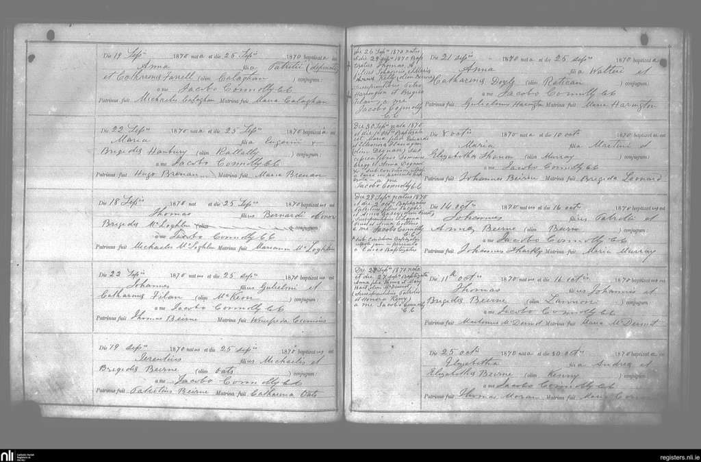 Ballinameen; County of Roscommon; Diocese of Elphin. Baptisms, Sep. 1870 to Oct. 1870