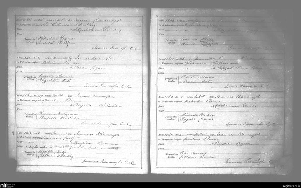 Ballinameen; County of Roscommon; Diocese of Elphin. Marriages, Oct. 1862 to Feb. 1863