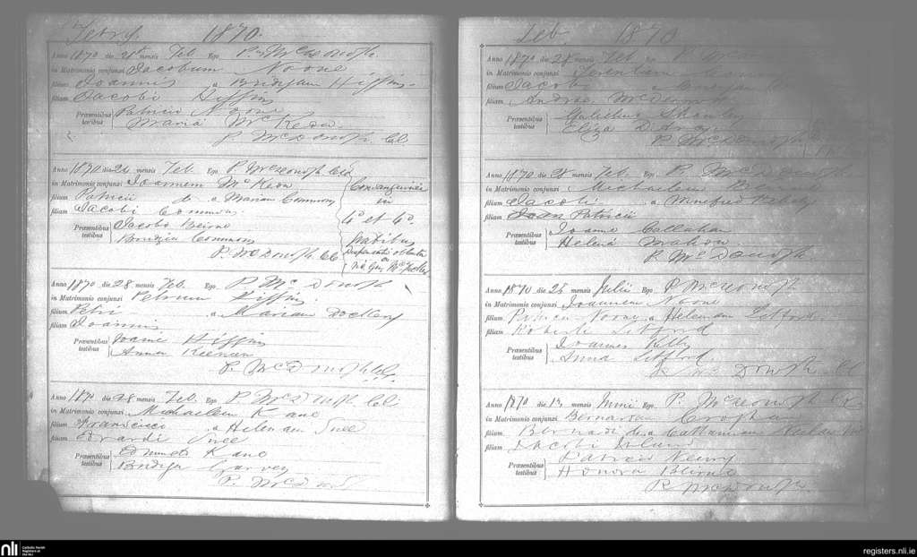 Ballinameen; County of Roscommon; Diocese of Elphin. Marriages, Feb. 1870 to July 1870