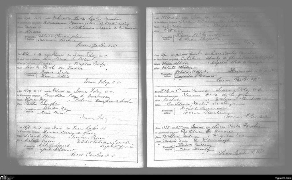 Ballinameen; County of Roscommon; Diocese of Elphin. Marriages, Feb. 1874 to Jan. 1875