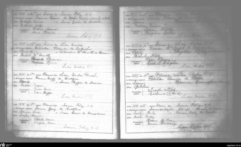 Ballinameen; County of Roscommon; Diocese of Elphin. Marriages, Jan. 1875 to Feb. 1875