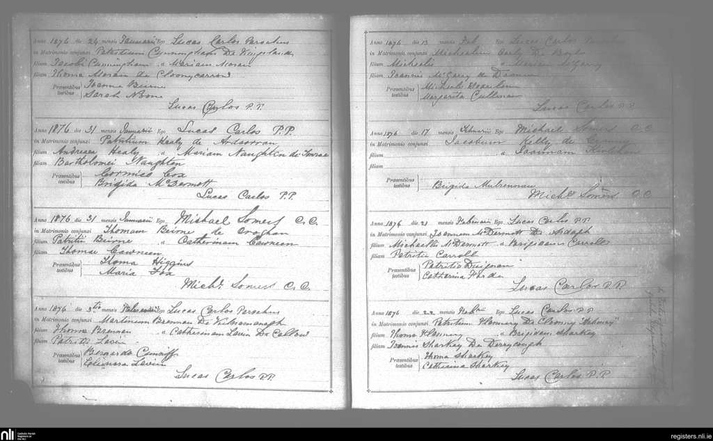 Ballinameen; County of Roscommon; Diocese of Elphin. Marriages, Jan. 1876 to Feb. 1876