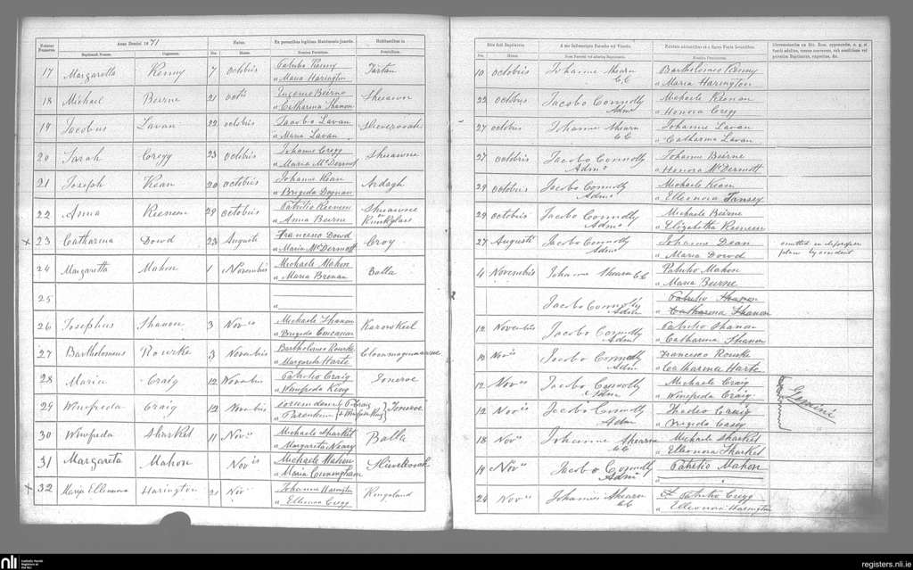 Ballinameen; County of Roscommon; Diocese of Elphin. Baptisms, Oct. 1871 to Nov. 1871
