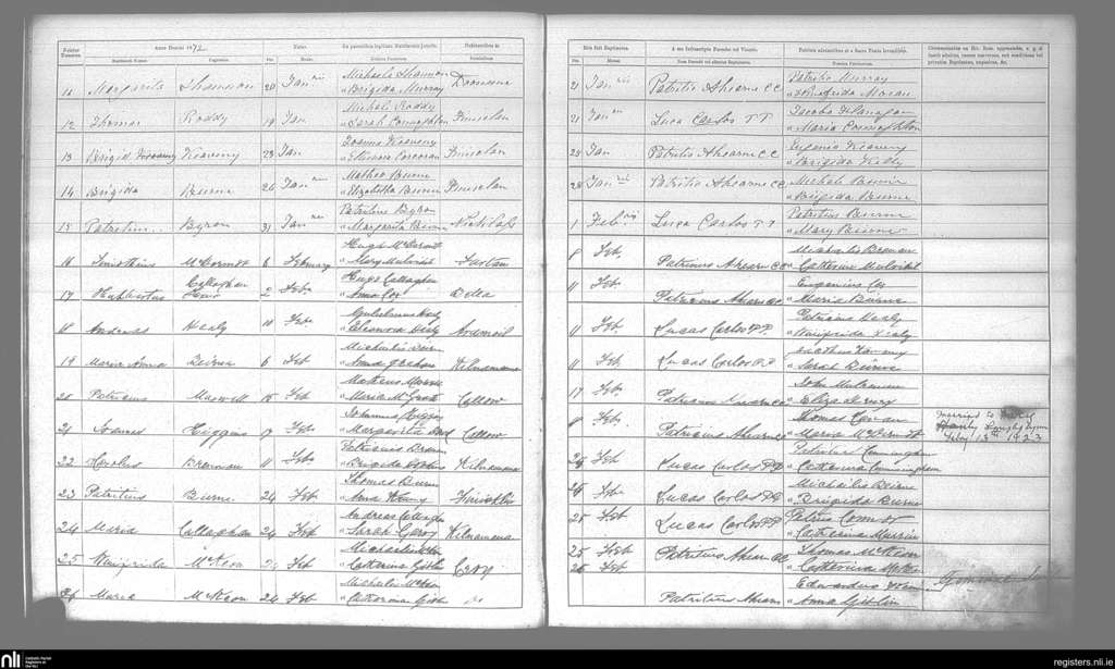 Ballinameen; County of Roscommon; Diocese of Elphin. Baptisms, Jan. 1872 to Feb. 1872