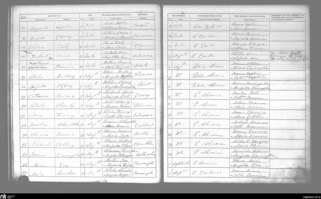 Ballinameen; County of Roscommon; Diocese of Elphin. Baptisms, July 1872 to Feb. 1880