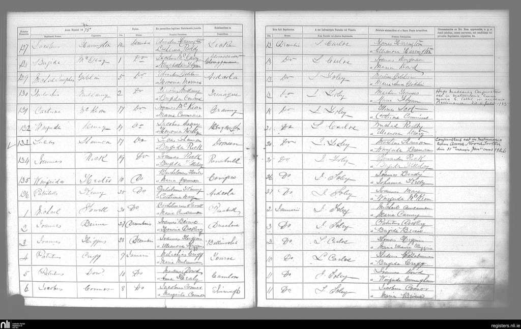 Ballinameen; County of Roscommon; Diocese of Elphin. Baptisms, Jan. 1848 to Dec. 1874