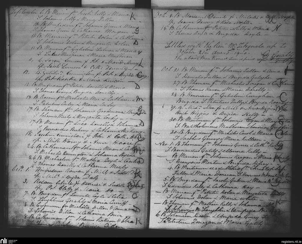 Kiltomb; County of Roscommon; Diocese of Elphin. Baptisms, Sep. 1837 to Nov. 1837