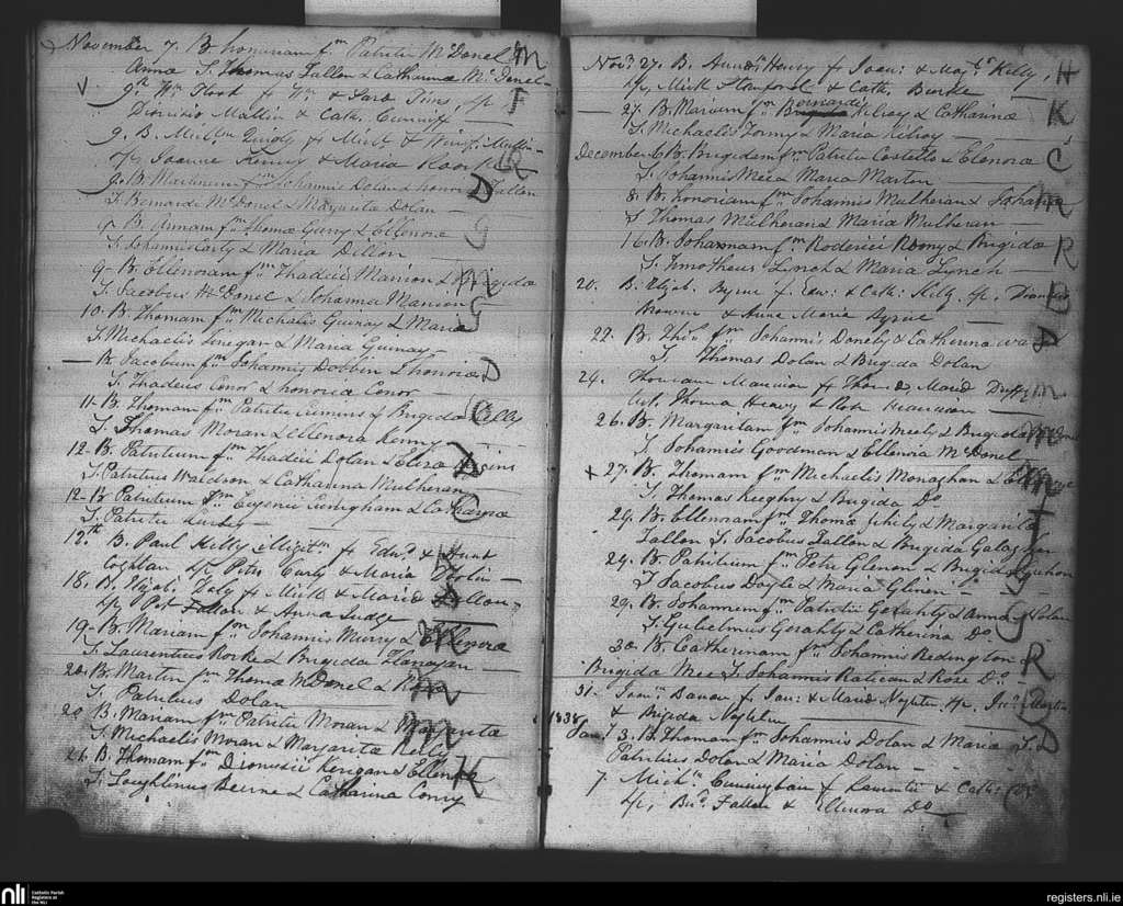Kiltomb; County of Roscommon; Diocese of Elphin. Baptisms, Nov. 1837 to Jan. 1838