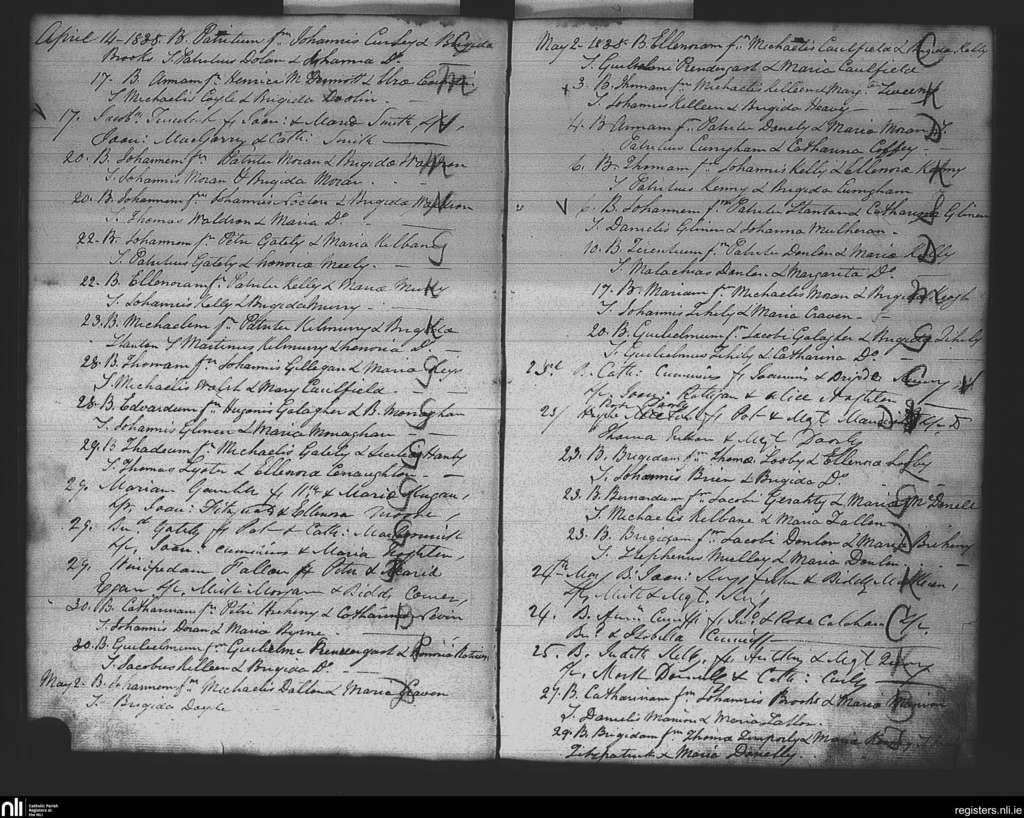 Kiltomb; County of Roscommon; Diocese of Elphin. Baptisms, Apr. 1838 to May 1838
