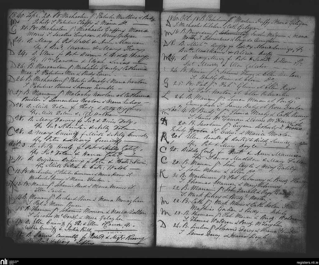 Kiltomb; County of Roscommon; Diocese of Elphin. Baptisms, Sep. 1840 to Nov. 1840