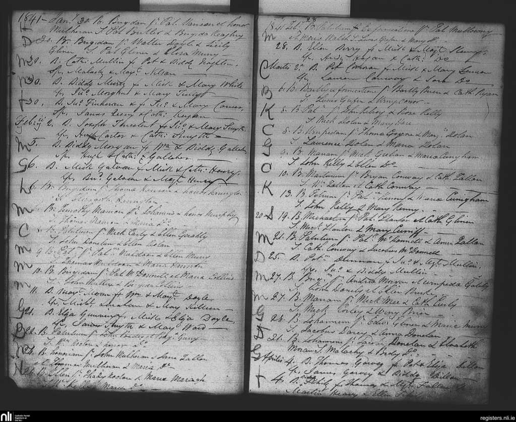 Kiltomb; County of Roscommon; Diocese of Elphin. Baptisms, Jan. 1841 to Apr. 1841