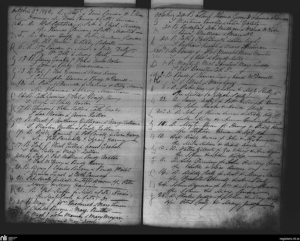 Kiltomb; County of Roscommon; Diocese of Elphin. Baptisms, Oct. 1842 to Dec. 1842