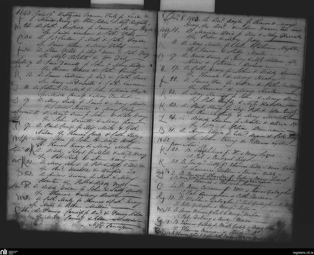 Kiltomb; County of Roscommon; Diocese of Elphin. Baptisms, Nov. 1842 to Dec. 1843