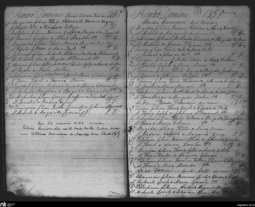 Kiltomb; County of Roscommon; Diocese of Elphin. Baptisms, Dec. 1849 to Mar. 1850