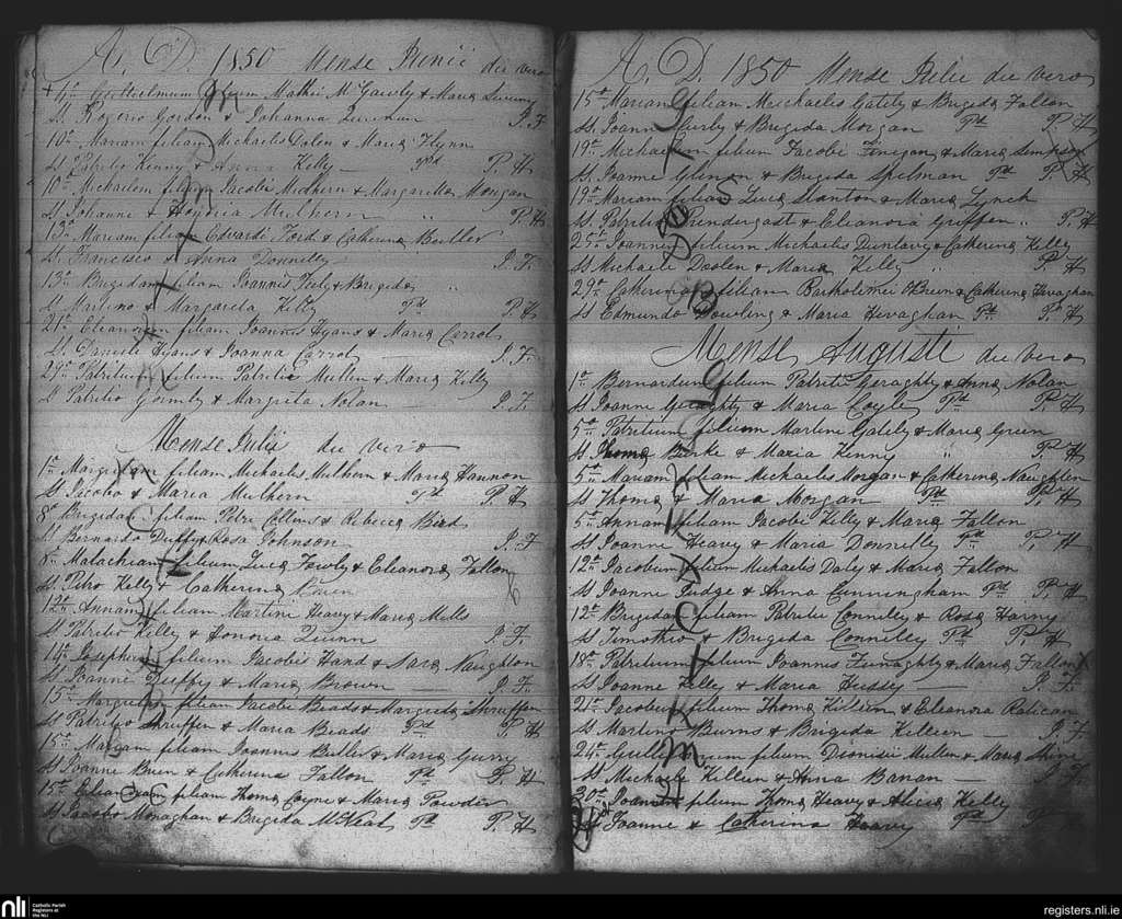 Kiltomb; County of Roscommon; Diocese of Elphin. Baptisms, June 1850 to Aug. 1850