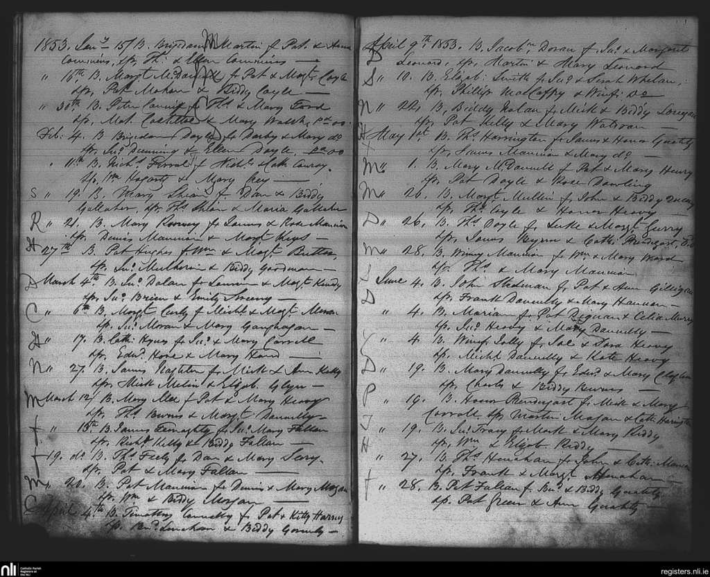 Kiltomb; County of Roscommon; Diocese of Elphin. Baptisms, Jan. 1853 to June 1853