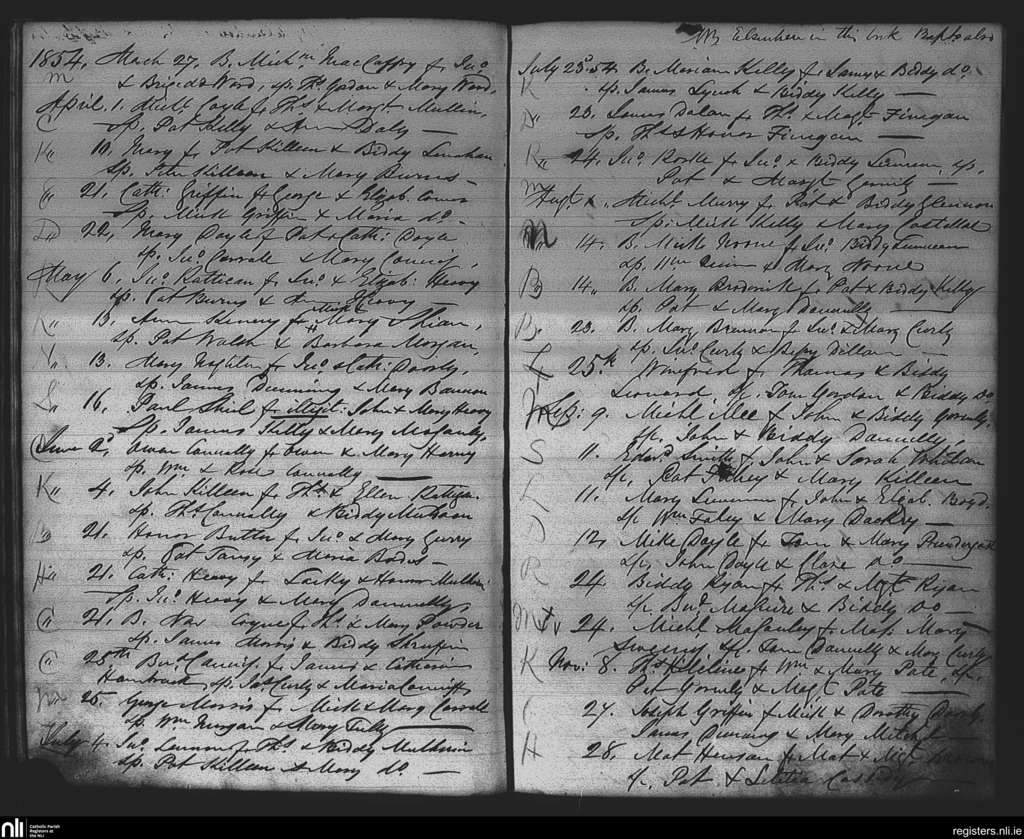 Kiltomb; County of Roscommon; Diocese of Elphin. Baptisms, Mar. 1854 to Nov. 1854