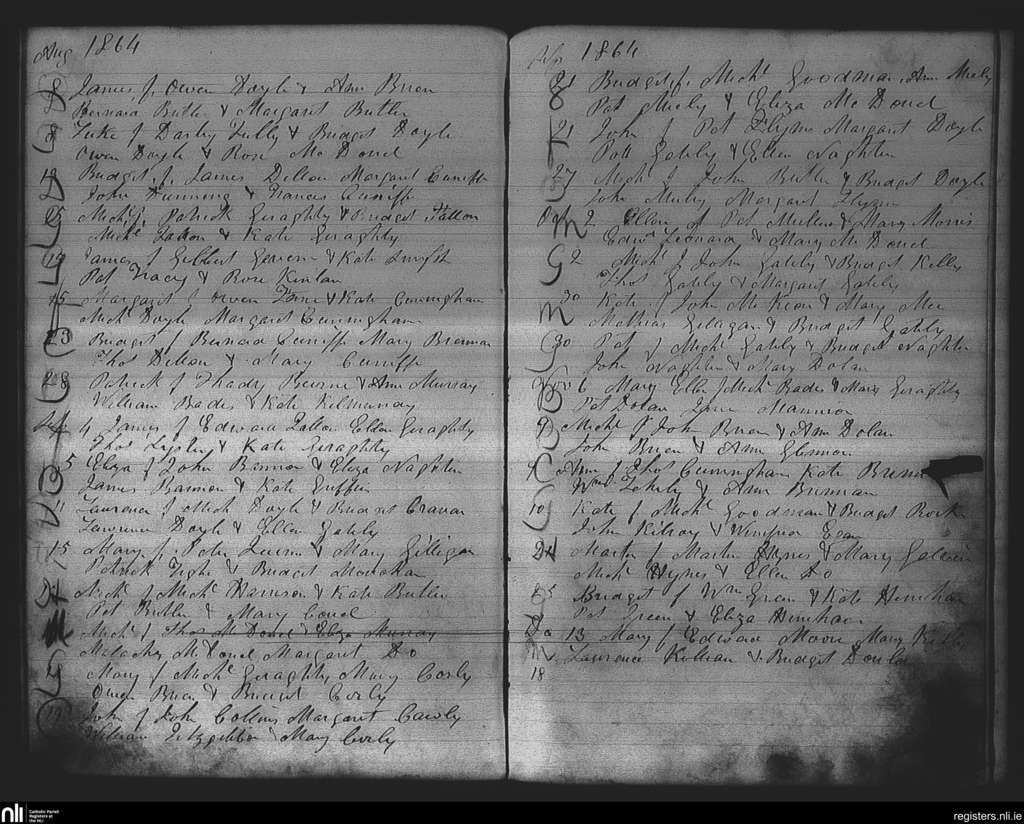 Kiltomb; County of Roscommon; Diocese of Elphin. Baptisms, Aug. 1864 to Nov. 1864