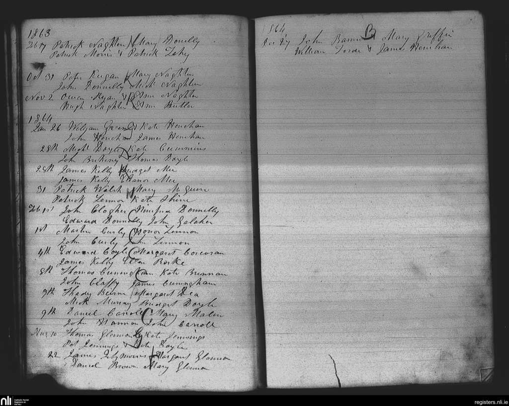 Kiltomb; County of Roscommon; Diocese of Elphin. Marriages, Feb. 1863 to Dec. 1864