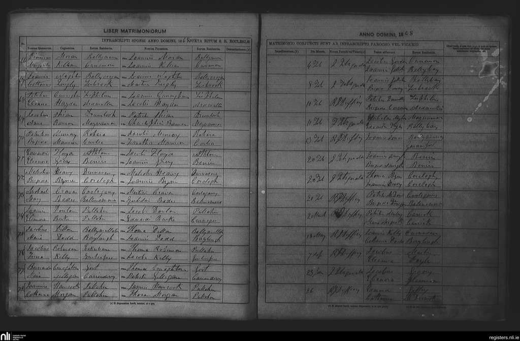 Kiltomb; County of Roscommon; Diocese of Elphin. Marriages, Feb. 1868 to Jan. 1869