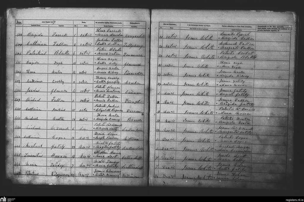 Dysart; County of Galway, Roscommon; Diocese of Elphin. Baptisms, Oct. 1867 to Dec. 1867