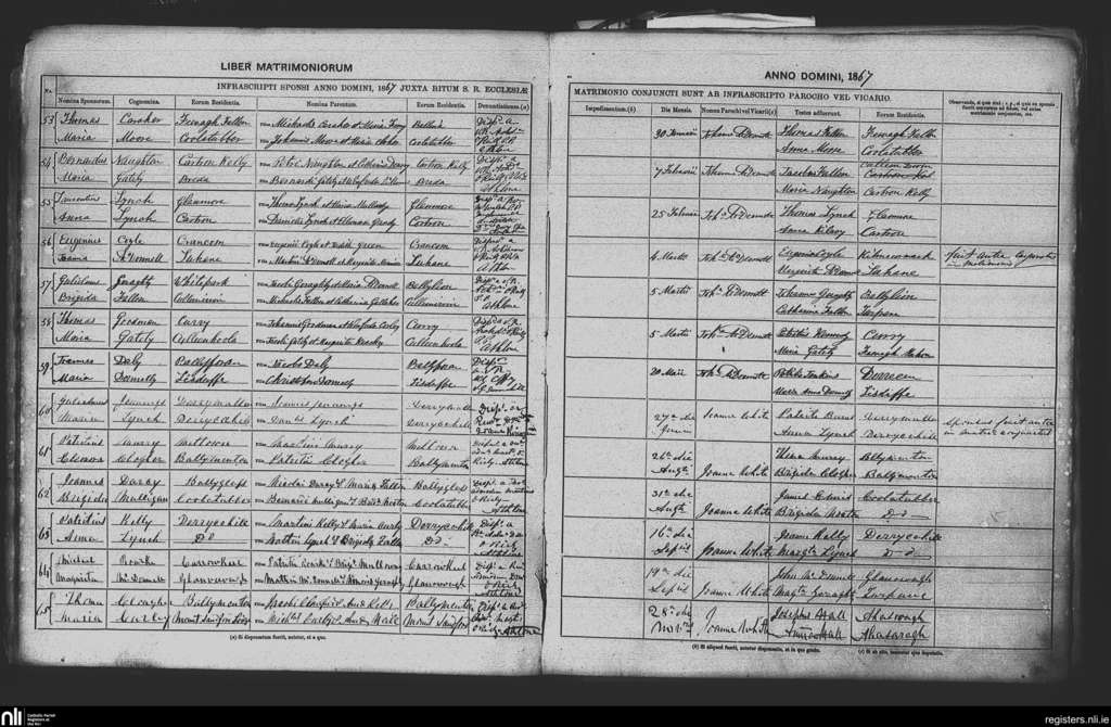 Dysart; County of Galway, Roscommon; Diocese of Elphin. Marriages, Jan. 1867 to Nov. 1867