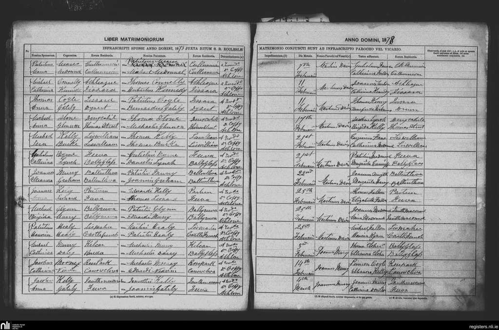 Dysart; County of Galway, Roscommon; Diocese of Elphin. Marriages, Feb. 1878 to Mar. 1878