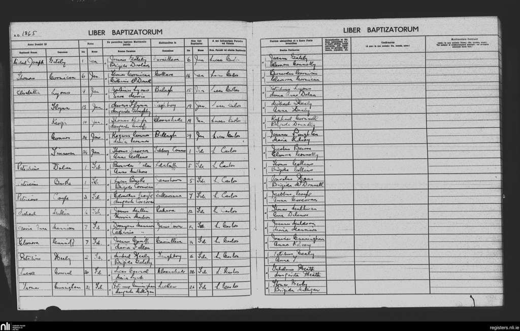 Dysart; County of Roscommon, Galway; Diocese of Elphin. Baptisms, Jan. 1865 to Feb. 1865