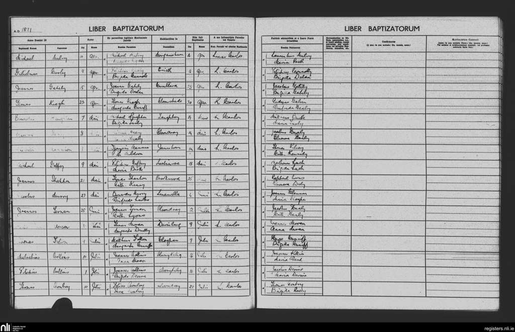 Dysart; County of Roscommon, Galway; Diocese of Elphin. Baptisms, Apr. 1871 to July 1871