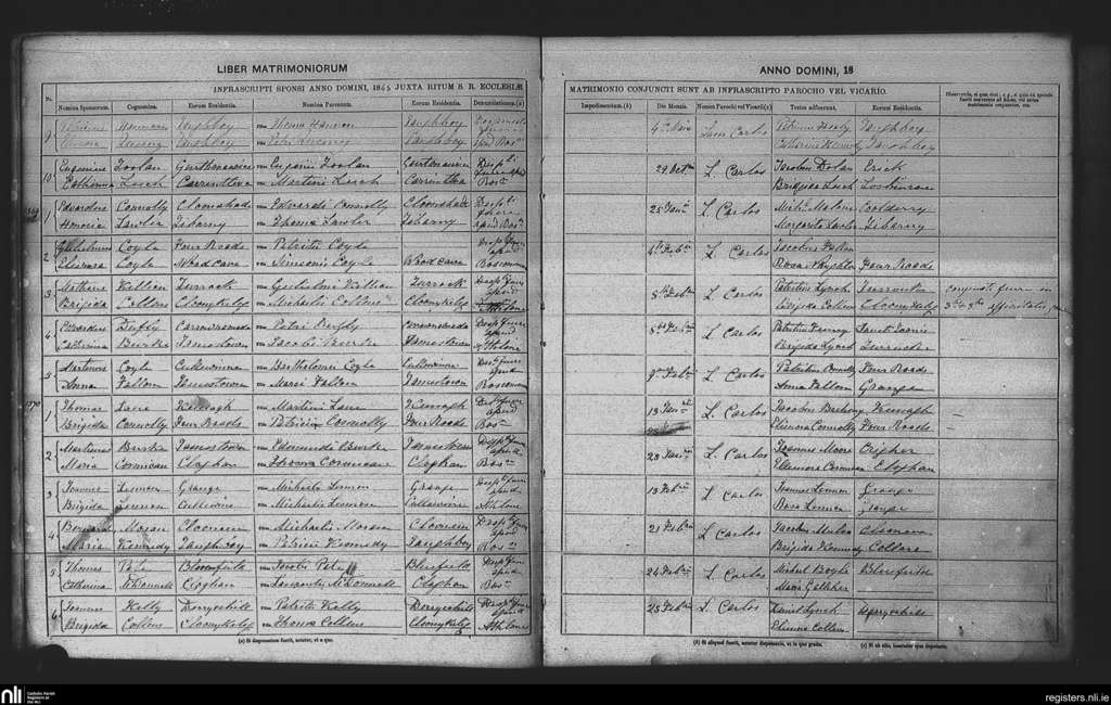 Dysart; County of Galway, Roscommon; Diocese of Elphin. Marriages, May 1868 to Feb. 1870