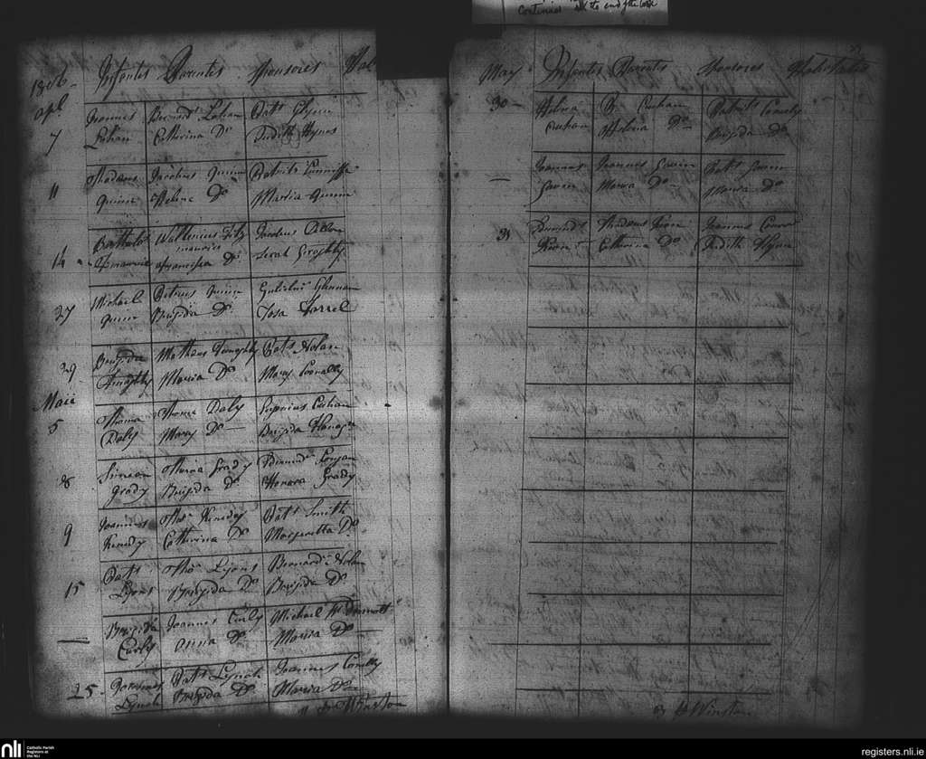 Killian; County of Galway; Diocese of Elphin. Baptisms, Apr. 1806 to May 1806