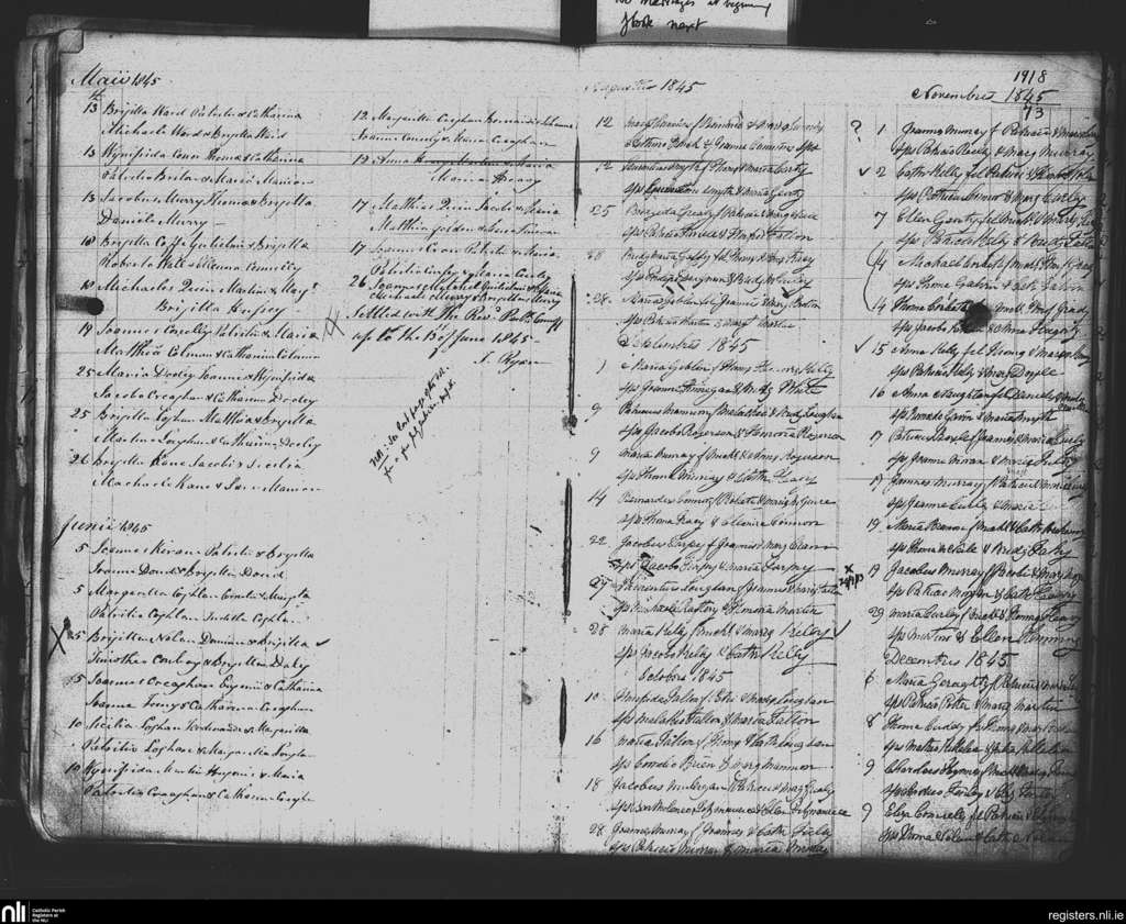 Killian; County of Galway; Diocese of Elphin. Baptisms, May 1845 to Dec. 1845