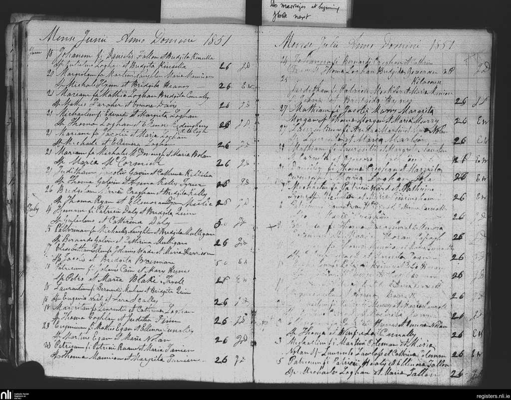 Killian; County of Galway; Diocese of Elphin. Baptisms, June 1851 to Sep. 1851