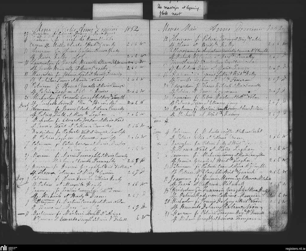 Killian; County of Galway; Diocese of Elphin. Baptisms, Mar. 1852 to June 1852