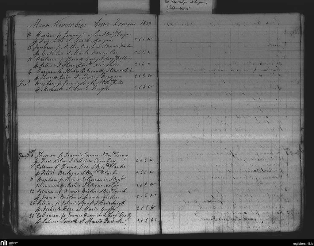 Killian; County of Galway; Diocese of Elphin. Baptisms, Nov. 1853 to Jan. 1854