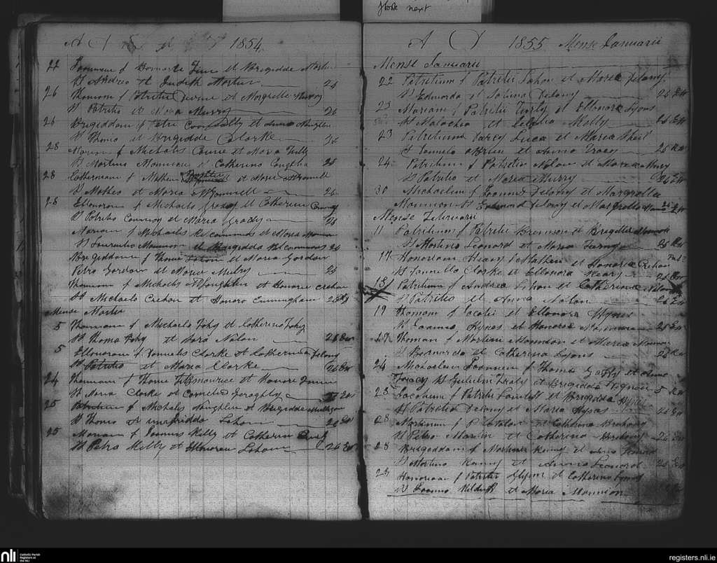 Killian; County of Galway; Diocese of Elphin. Baptisms, Mar. 1854 to Feb. 1855