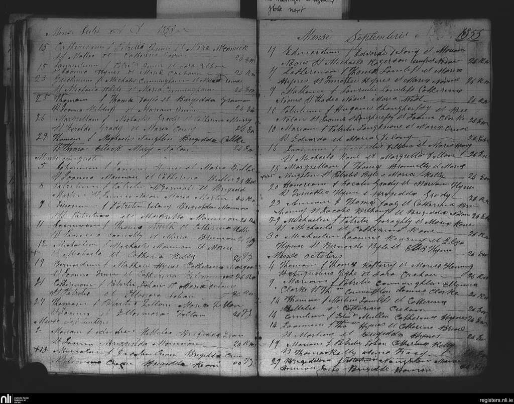 Killian; County of Galway; Diocese of Elphin. Baptisms, July 1855 to Oct. 1855
