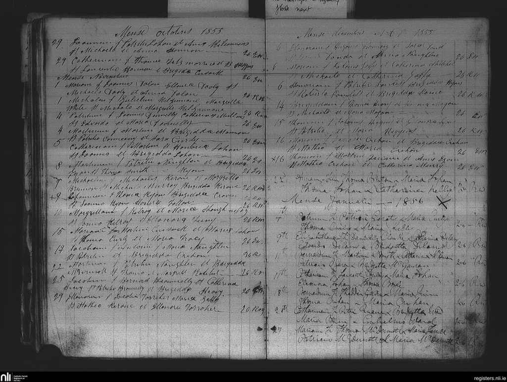 Killian; County of Galway; Diocese of Elphin. Baptisms, Oct. 1855 to Jan. 1856