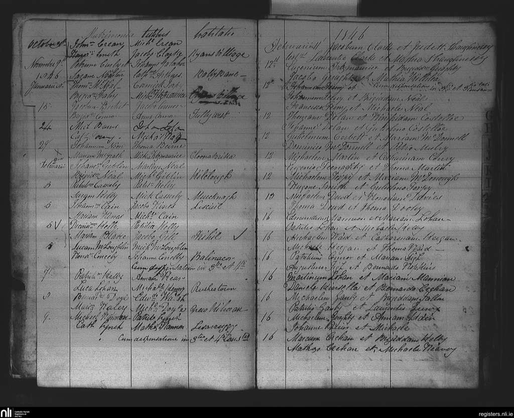Killian; County of Galway; Diocese of Elphin. Marriages, Oct. 1845 to Feb. 1846