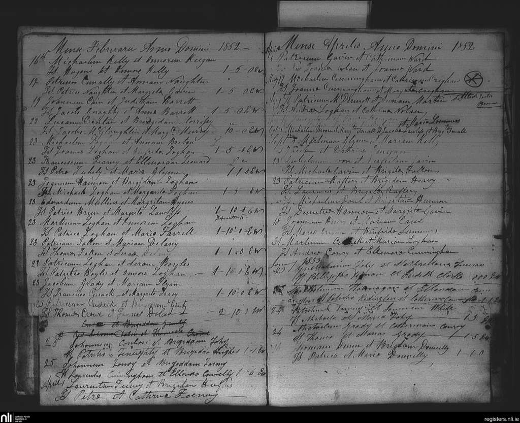 Killian; County of Galway; Diocese of Elphin. Marriages, Feb. 1852 to Jan. 1853