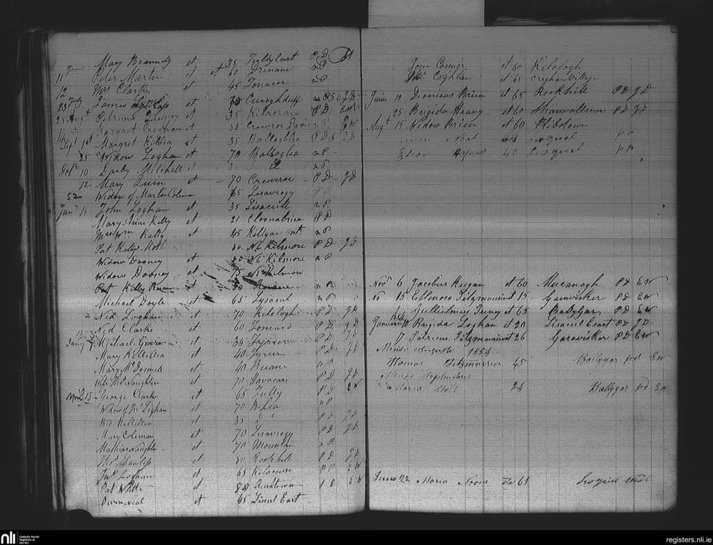 Killian; County of Galway; Diocese of Elphin. Deaths, June 1851 to Sep. 1854