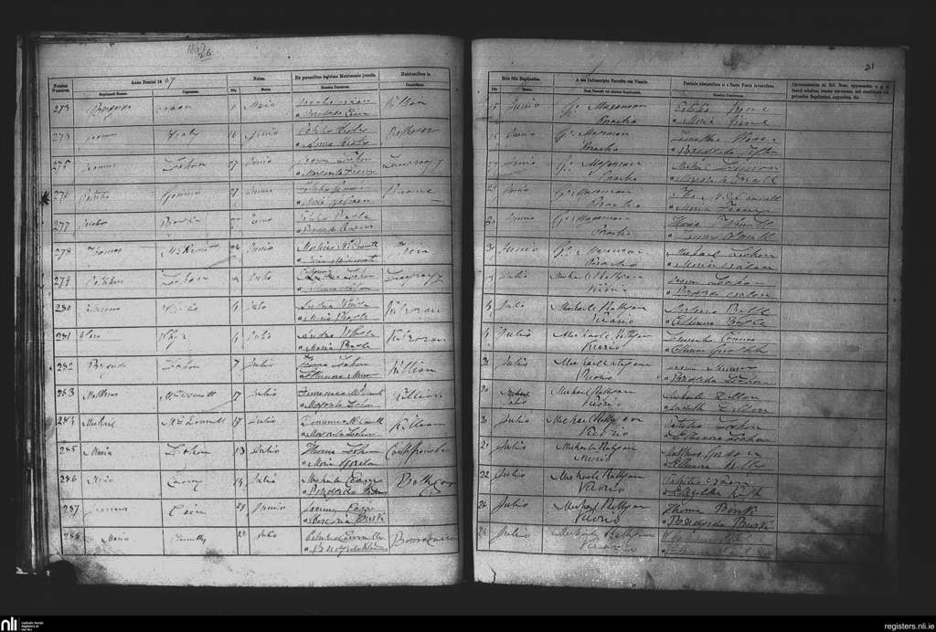 Killian; County of Galway; Diocese of Elphin. Baptisms, June 1867 to July 1867