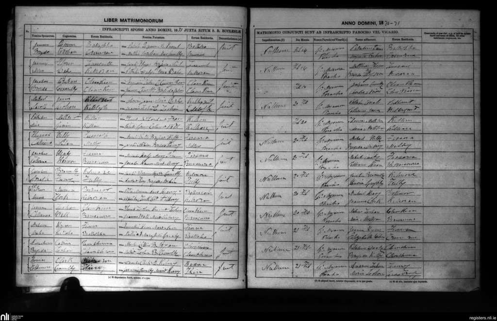 Killian; County of Galway; Diocese of Elphin. Marriages, Feb. 1871