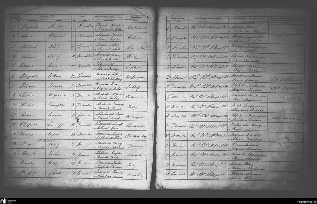 Frenchpark; County of Roscommon; Diocese of Elphin. Baptisms, Nov. 1866 to Jan. 1867
