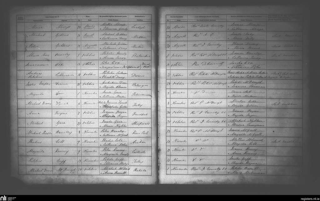 Frenchpark; County of Roscommon; Diocese of Elphin. Baptisms, Mar. 1868 to Nov. 1868