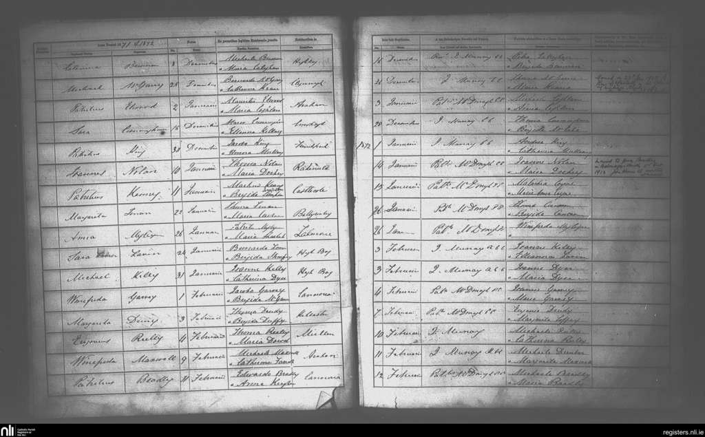 Frenchpark; County of Roscommon; Diocese of Elphin. Baptisms, Dec. 1871 to Feb. 1872